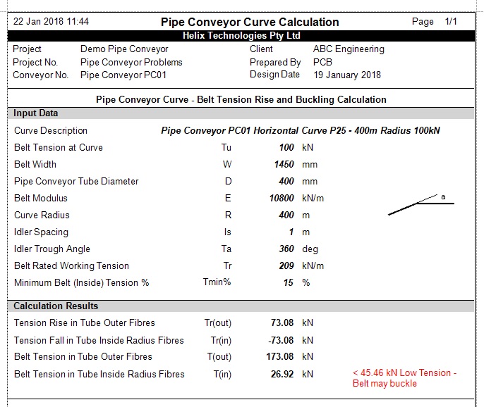 Pipe Conveyor Curve Calculation Report - Tension too low